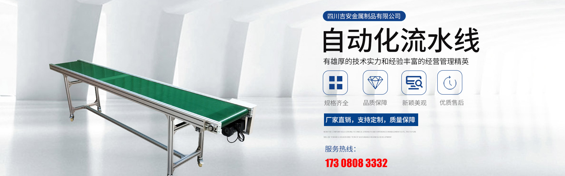 四川吉安金屬制品有限公司是集工業(yè)鋁型材及配件、貨架、工作臺、皮帶輸送線、自動化流水線、線棒精益管及扣件、鈑金和鋁合金流利條、鋁線棒及扣件、倉儲設備、物流器具、周轉臺車、工位器具、非標器具設...